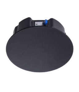 2-Way ceiling speaker with fire dome for voice alarm applications certified EN 54-24, suitable for voice announcements and background music with excellent sound quality in buildings. The 30W powered speaker is equipped with a 130mm 2-way system featuring a highquality tweeter and a 100V transformer with 4 power adjustments. Low-impedance operation is also possible. The impact-resistant plastic housing in RAL 9016 and RAL 9005 guarantees long-term durability.