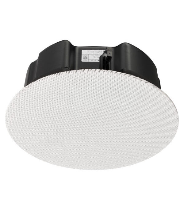 2-Way ceiling speaker with fire dome for voice alarm applications certified EN 54-24, suitable for voice announcements and background music with excellent sound quality in buildings. The 30W powered speaker is equipped with a 130mm 2-way system featuring a highquality tweeter and a 100V transformer with 4 power adjustments. Low-impedance operation is also possible. The impact-resistant plastic housing in RAL 9016 and RAL 9005 guarantees long-term durability.