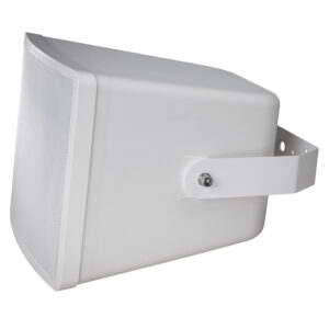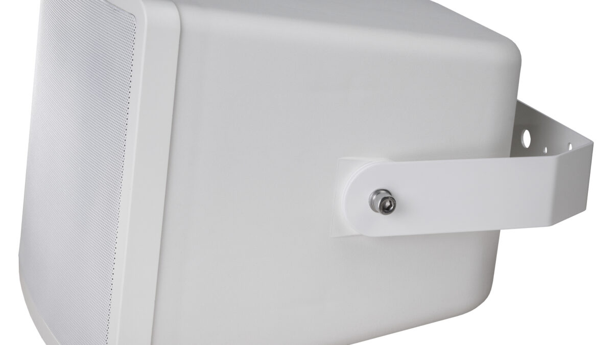 The sturdy high-impact ABS housing in white with a metal hexagon-shaped aluminium grille offers IP66 enclosure protection. Connection is easily done by a screw-terminal at the rear of the speaker, protected by a cover plate with 2 x PG11 cable glands. The metal mounting bracket with adjustable inclination enables simple and safe installation. A safety rope is included in the delivery.
