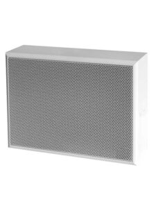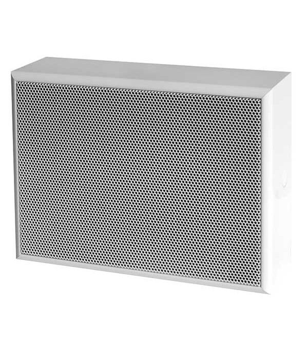 The 6W powered speaker is equipped with a 165mm fullrange loudspeaker chassis and a 100V transformer with 3 power adjustments. The high-density, shock-resistant MDF wood housing in white provides a low resonance sound. A sturdy front grille made of steel guarantees enduring stability.